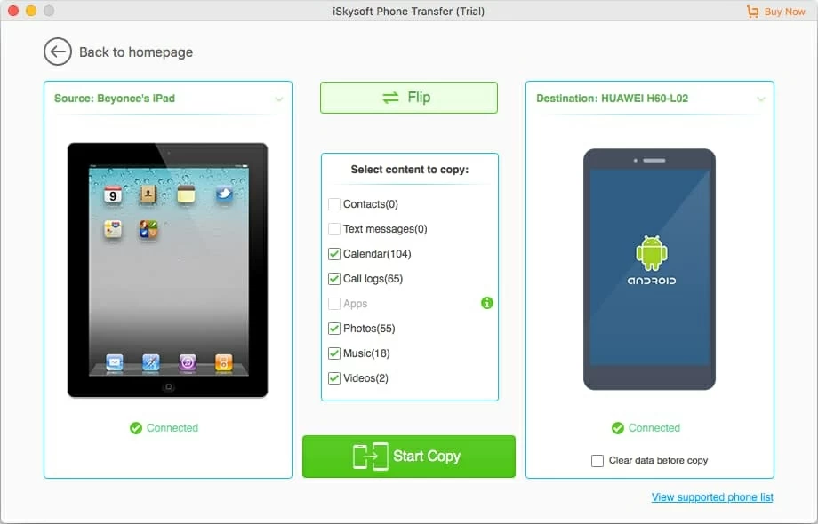 Before we get into the actual process of transferring all your tracks from an iPad to LG smartphone, I would like to make a brief introduction of Telephone Transfer first. As an ane-cease solution, it is specifically designed for transferring SMS, contacts, music, videos, photos and other content flawlessly and effortlessly when you set up your new phone. It is fitted with many features: transferring information in a straightforward way; the function of fill-in and restore; running on both Windows and Mac.